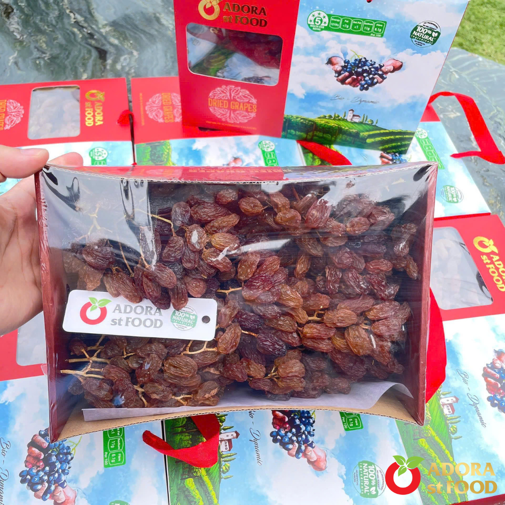 Crimson Dried Grape Clusters are made from premium Crimson seedless grapes, naturally dried on the vine to preserve their vibrant color, natural sweetness, and rich fruity flavor. Carefully sourced from Australian vineyards, these grape clusters retain their original shape and deliver a soft, chewy texture with a pleasantly sweet and slightly tangy taste.
