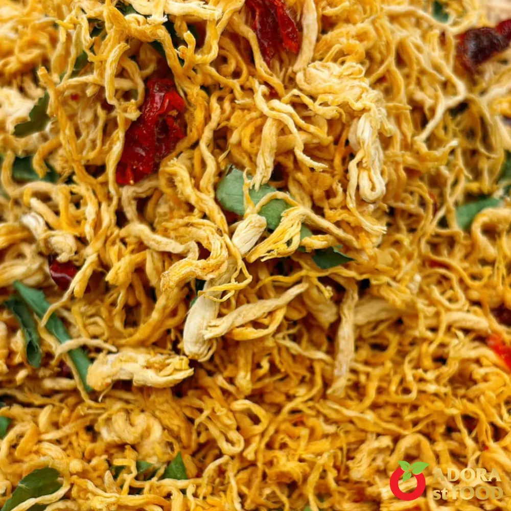 Lime Leaf Chicken Jerky is a popular Vietnamese snack made from tender chicken strips, slow-dried and seasoned with aromatic spices and fragrant kaffir lime leaves. Savory, slightly sweet, and beautifully fragrant, this jerky delivers a perfect balance of flavor with a soft, chewy texture.